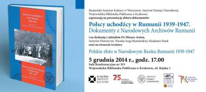 Instytut Pamięci Narodowej, Rumuński Instytut Kultury w Warszawie oraz Wojewódzka Biblioteka Publiczna w Krakowie zapraszają na prezentację zbioru dokumentów „Polscy uchodźcy w Rumunii 1939-1947. Dokumenty z Narodowych Archiwów Rumunii”