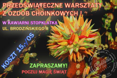 Podczas warsztatów, w ciepłej, przedświątecznej atmosferze, nauczymy się samodzielnego wykonania ozdób choinkowych w niezwykle prosty i efektowny sposób.