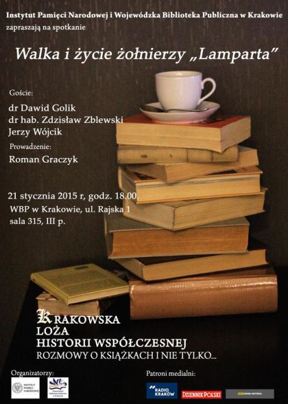 Instytut Pamięci Narodowej oraz Wojewódzka Biblioteka Publiczna w Krakowie zapraszają na spotkanie „Walka i życie żołnierzy Lamparta”. W dyskusji wezmą dr Dawid Golik, dr hab. Zdzisław Zblewski oraz Jerzy Wójcik. Spotkanie poprowadzi Roman Graczyk.