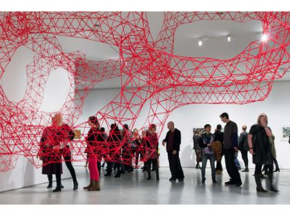 Po oprowadzaniu odbędzie się spotkanie z artystą Akihisą Hiratą, którego pracę Häm prezentujemy na wystawie. Instalacja Hiraty to skomplikowana struktura z plastikowych słomek. Poprzez tytuł odwołuje się do życia – „häm” to jeden ze składników hemoglobiny. Praca stanowi model, który ma oddawać potencjał architektury XXI wieku. W projektach Hiraty widoczne są zainteresowanie matematyką i światem organicznym. Tworzone przez niego formy mają wewnętrzną logikę, jednocześnie obrazując stan wolności.