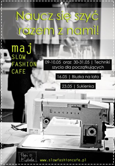 W samym środku wiosny, kawiarnia krawiecka Slow Fashion Cafe zaprasza na majowe spotkania podczas których uczestnicy warsztatów samodzielnie mogą uszyć wymarzoną bluzkę na lato, sukienkę w wybranym przez siebie wzorze. Wszystkich zainteresowanych rozpoczęciem przygody z maszyną zapraszamy na dwudniowe techniki szycia dla początkujących, które odbędą się na początku i na końcu maja.