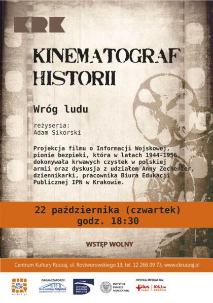 Projekcja filmu o Informacji Wojskowej, pionie bezpieki, która w latach 1944–1956 dokonywała krwawych czystek w polskiej armii oraz rozmowa z udziałem Anny Zechenter, dziennikarki, pracownika Biura Edukacji Publicznej IPN w Krakowie.