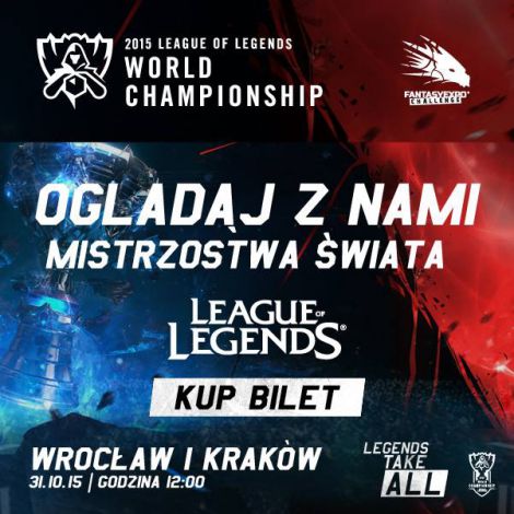 Fantasy Expo Challenge i League of Legends - Poland zapraszają wszystkich fanów League of Legends na wspólne oglądanie finałów Mistrzostw Świata League of Legends, które odbędą się już 31 października Klubie Studio w Krakowie.