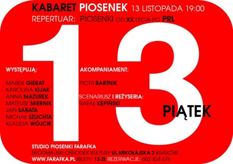 13 listopada PIĄTEK godzina 19.00 ul. Mikołajska 2 Kraków