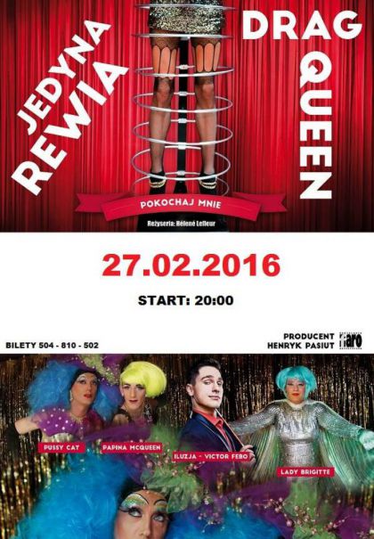 Jedyna w Polsce rewia Drag Queen "Pokochaj mnie" tym razem wersja noworoczna !...nasza rewia to roztańczone, kolorowe, pełne humoru widowisko, które opowiada o kobiecie... Istocie zmysłowej, ekscytującej zaczarowanej, wręcz magicznej. Usłyszycie światowe przeboje dobrze Wam znane i te, które dopiero odkryjecie. Wisienką na torcie jest pokaz iluzji w wykonaniu Victora Febo, Jego show dodaje smaczku pikanteryjnej kobiecości Drag Queen. PRZYBYWAJCIE, TO TRZEBA ZOBACZYĆ!