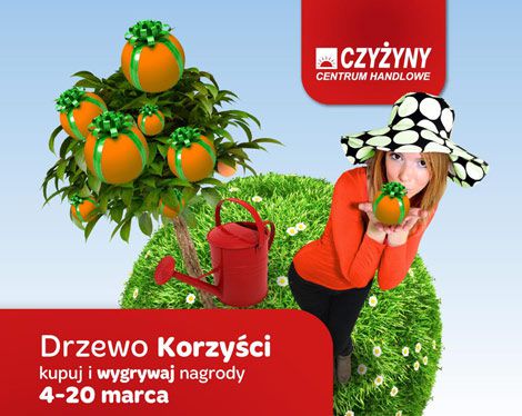 W dniach od 4 do 20 marca Centrum Handlowe Czyżyny zaprasza na wyjątkową akcję promocyjną, w ramach której klienci, poprzez specjalną aplikację www.drzewokorzysci.pl, będą mieli okazję do wielkiego „sadzenia” i „pielęgnowania” wirtualnych Drzew Korzyści. Na klientów biorących udział w tej innowacyjnej akcji codziennie czekają cenne nagrody, a w finale aż 10 000 złotych na zakupy w Centrum Handlowym Czyżyny.