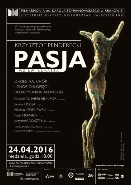 50. rocznica polskiego prawykonania "Pasji według św. Łukasza" Krzysztofa Pendereckiego w Filharmonii Krakowskiej