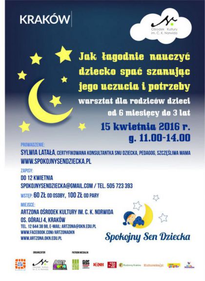 Zapisy do 12 kwietnia na adres mailowy: spokojnysendziecka@gmail.com lub pod nr tel. 505 723 393.