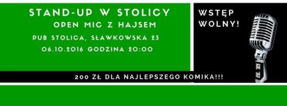 Stolica zaprasza na imprezę typu stand-up! W pierwszej części odbędzie się open mic. Każdy, kto ma ochotę, wchodzi na scenę, aby opowiedzieć kawałek stand-upu, historię z życia, anegdotę, bardzo dziwny, zabawny sen (ale jednak nalepiej kawałek stand-upu).