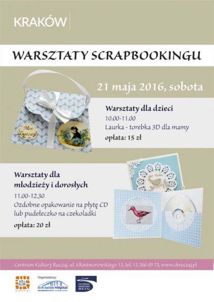 Zapisy w biurze CK "Ruczaj", ul. Rostworowskiego 13, od pn-pt w godz. 11:00-21:00, tel. 12 266 09 73 lub mailowo: biuro@ckruczaj.pl.