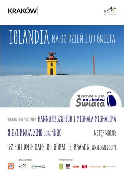 W ramach cyklu Nowa Huta na końcu świata zapraszamy na slajdowisko z udziałem Hanny Szczypiór i Michała Michalika pt. Islandia na co dzień i od święta.