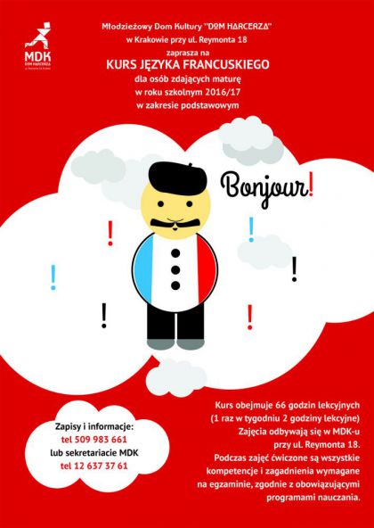 Kurs jest przeznaczony dla maturzystów zdających egzamin z języka francuskiego na poziomie podstawowym. Założenia dydaktyczne kursu realizowane są zgodnie ze standardami ministerialnymi i mają na celu przygotowanie słuchaczy do egzaminu maturalnego.