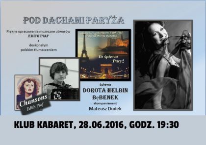 Piosenki z repertuaru Edith Piaf z akompaniamentem Mateusza Dudka (akordeon) zaprezentuje w najbliższy wtorek na scenie Klubu Kabaret Dorota Helbin Bębenek. To śpiewa Paryż!