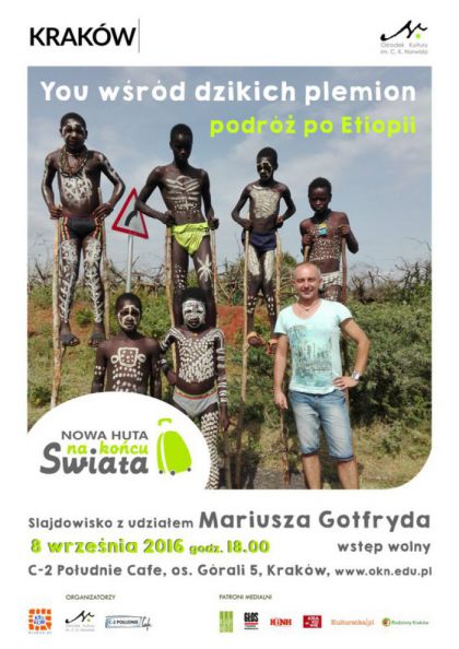 "You wśród dzikich plemion" to multimedialna podróż po Etiopii, którą zamieszkują najdziksze plemiona Afryki: Konso, Mursi czy Hamerowie, którzy do niedawna nie wiedzieli nawet o istnieniu kontynentu Afrykańskiego. Autor podczas swojego pobytu poznawał ich kulturę i obyczaje. Pokaz wzbogacony zostanie eksponatami - pamiątkami podarowanymi autorowi przez rdzennych mieszkańców.