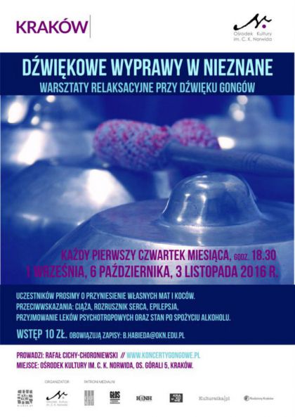 Uczestników prosimy o przyniesienie własnych mat i koców, na których będzie można się położyć i w pełni skorzystać z działania dźwięku.