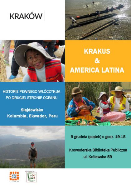 Jeśli lubisz podróżować, odkrywać odległe kraje, fascynuje Cię Ameryka Łacińska, a w szczególności Kolumbia, Ekwador oraz Peru, to zapraszamy 9 grudnia (piątek) o 19.15 na slajdowisko Antoniego Sikory pt. „KRAKUS & AMERICA LATINA. Historia pewnego włóczykija po drugiej stronie oceanu”