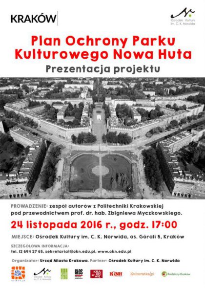 Prezentacja projektu Planu Ochrony Parku Kulturowego Nowa Huta przez zespół autorów z Politechniki Krakowskiej im. T. Kościuszki pod przewodnictwem prof. dr. hab. Zbigniewa Myczkowskiego.