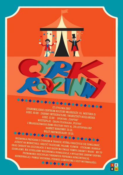 Scena Młodego Widza zaprasza 22 stycznia 2017o godz. 10.00 na Cyrk Rodzinny.