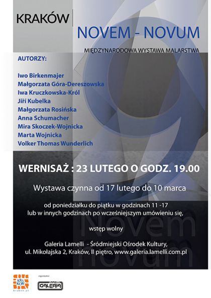 „Według Pitagorasa świat jest zbudowany z liczb. Dlatego szukając tytułu wystawy pomyśleliśmy o liczbie osób w niej uczestniczących. Prowadząc grę słowną dotyczącą pochodzenia łacińskiego słowa dziewięć, łac. »novem«, można zauważyć analogię, jaką tworzy z słowem »novum«, oznaczającym nowość. Dziewiątka to liczba, która poprzez 9 Muz rządzi sztukami pięknymi. Jest to także liczba, która kończy cykl (od 1 do 9) i zapowiada jednocześnie coś nowego. Jednak z uwagi na to, że w numerologii zamyka skalę, mówi także o dojrzałości duchowej, otwartości i wrażliwości. Liczbę tę kojarzy się z cechami charakteru takimi, jak: upór, refleksja, emocjonalność, wolność, talent i geniusz artystyczny, twórcza intuicja i otwartość. Są to cechy osobowości, z których większość zawarta jest, w tak zwanej »osobowości artysty«”. Iwa Kruczkowska-Król