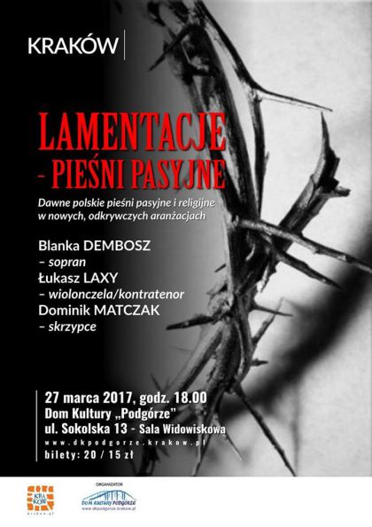 LAMENTACJE - PIEŚNI PASYJNE : Blanka Dembosz -sopran, Łukasz Laxy- wiolonczela/kontratenor, Dominik Matczak skrzypce