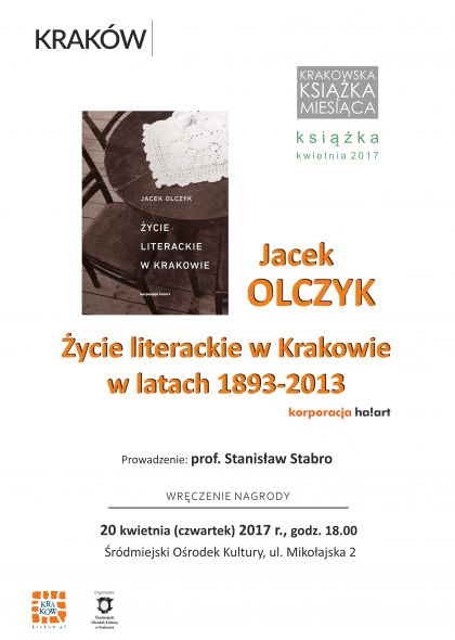 Zapraszamy na spotkanie promocyjne książki Jacka Olczyka połączone z wręczeniem nagrody "Krakowskiej Książki Miesiąca".