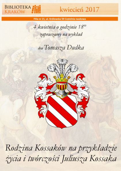 Zapraszamy na wykład doktora Tomasza Dudka o artystycznej rodzinie Kossaków na przykładzie życia i twórczości polskiego malarza, rysownika i ilustratora Juliusza Kossaka.