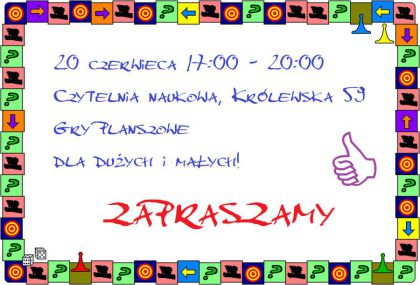 Czytelnia naukowa filia 21 Biblioteki Kraków zaprasza wszystkich na gry planszowe. Planszówki dla dużych i małych 10+