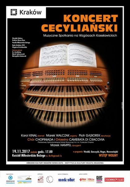 W niedzielę, 19 listopada 2017 r. o godz. 17.00 w kościele Miłosierdzia Bożego na Wzgórzach Krzesławickich odbędzie się Koncert Cecyliański w ramach cyklu Muzyczne Spotkania na Wzgórzach Krzesławickich. Wydarzenie wpisuje się w długoletnią tradycję organizowania koncertów ku czci Świętej Cecylii - patronki muzyki sakralnej, śpiewu, chórów i organistów. Jednocześnie, organista i pomysłodawca cyklu - Marek Walczak pragnie podkreślić czynnym udziałem w koncercie, swoją dwudziestoletnią obecność w kościele na Wzgórzach Krzesławickich.