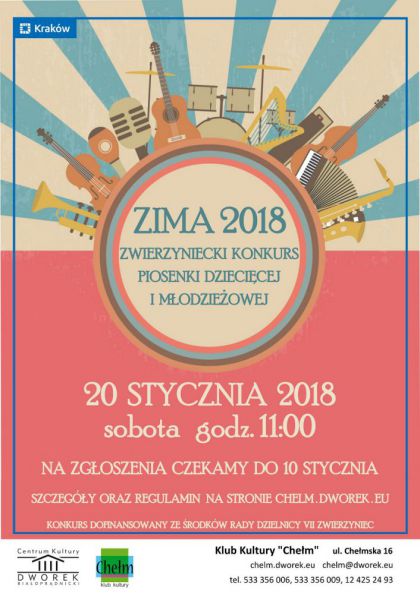 Klub Kultury Chełm zaprasza do udziału w II edycji Zwierzynieckiego Konkursu Piosenki Dziecięcej i Młodzieżowej „Zima 2018”.