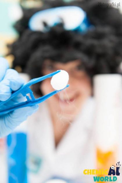 Znów spotkamy się z dwutlenkiem węgla, tym razem w innej postaci. Będzie jak zawsze wybuchowo i kolorowo! Wspólnie z nami zobaczycie jak ciało stałe zamieni się w gaz na naszych oczach! Bądźcie gotowi, bo cylindry aż się zadymią od Waszych czarów! Na koniec spróbujemy złapać uciekające bąbelki!