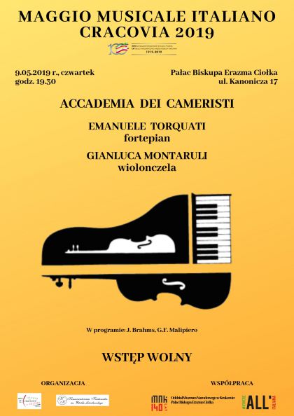 Włoski Instytut Kultury w Krakowie oraz Konserwatorium Krakowskie im. W. Lutosławskiego zapraszają na koncert w ramach Festiwalu MAGGIO MUSICALE ITALIANO - CRACOVIA 2019