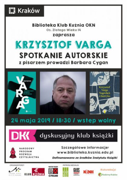 Spotkanie z pisarzem Krzysztofem Vargą - trzykrotnym finalistą Nagrody Literackiej Nike. Prowadzenie: Barbara Cygan. Wstęp wolny.