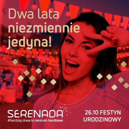 Porywająca muzyka, animacje, dużo słodkości, szeroka oferta dla najmłodszych i 4000 prezentów za zakupy dla klientów Serenady! To wszystko czeka na tych, którzy odwiedzą Serenadę w urodzinowy weekend. Centrum istnieje na mapie Krakowa już od dwóch lat. Od tego czasu zachwyca szeroką ofertą handlową, atrakcyjną architekturą i licznymi wydarzeniami dla mieszkańców miasta. Teraz zaprasza wszystkich do wspólnego świętowania!