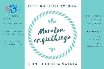Maraton nauki języka angielskiego "W 5 dni dookoła świata" trwa 5 dni w terminie od 3 lutego do 7 lutego 2020 roku i jest dedykowany dla dzieci 7 - 13 lat.