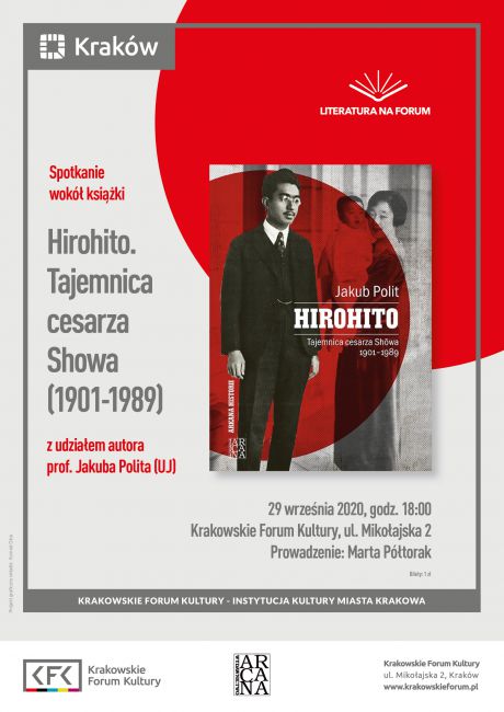 Spotkanie wokół książki Hirohito. Tajemnica cesarza Showa (1901 – 1989) z udziałem autora prof. Jakuba Polita (UJ). 2 września 1945 roku na pokładzie pancernika „Missouri” podpisany został akt kapitulacji Japonii. W maju 1946 roku alianci rozpoczęli procesy przed Trybunałem Wojskowym w Tokio. Dowódca sił okupacyjnych USA gen. Douglas MacArthur nie chciał, by Hirohito stanął przed sądem. Panujący przez 62 lata cesarz Shōwa, za życia znany jako Hirohito, należy do najbardziej enigmatycznych i kontrowersyjnych mężów stanu XX wieku. Jego oceny oscylują między obrazem bezwolnej marionetki w cudzych rękach, po perfidnie zacierającego ślady własnych zbrodni wszechwładnego dyktatora. Czy przed 1945 rokiem był władcą absolutnym w państwie oficjalnie konstytucyjnym? I czy po tej dacie naprawdę stracił wszelki wpływ na rządy? Analiza skąpych świadectw, które można uznać za rzetelne, daje obraz daleki od proponowanych schematów.