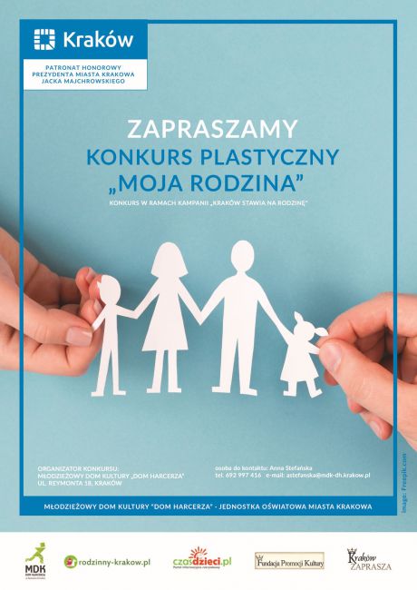 Młodzieżowy Dom Kultury „Dom Harcerza” zaprasza dzieci w wieku 3 – 9 lat do wzięcia udziału w Konkursie plastycznym pt. „MOJA RODZINA”.