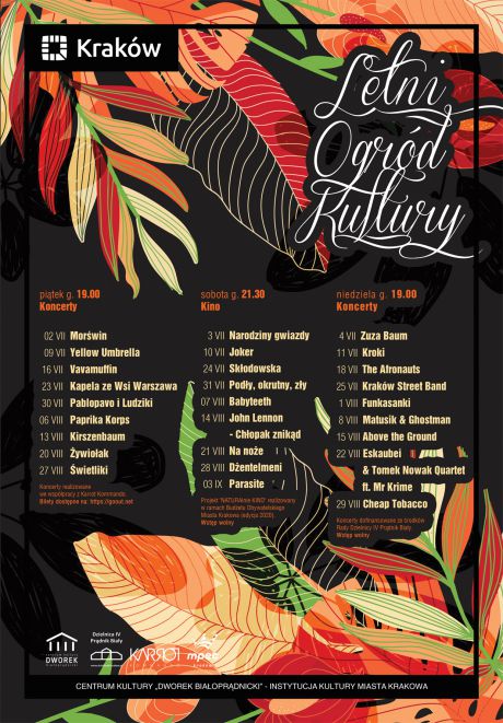 Dworek Białoprądnicki oraz Karrot Kommando zapraszają na KARROT BIAŁOPRĄDNICKI, czyli kameralne, plenerowe koncerty we wszystkie piątki lipca i sierpnia 2021 roku.