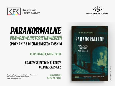 Krakowskie Forum Kultury zaprasza na spotkanie z Michałem Stonawskim, autorem książki Paranormalne. Prawdziwe historie nawiedzeń (ZNAK 2021). Tematem rozmowy będę zjawiska paranormalne, nawiedzone miejsca, opowieści świadków, opinie egzorcystów oraz inne tematy mrożące krew w żyłach. Prowadzenie: Marta Półtorak