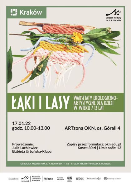 Łąki i Lasy to zajęcia ekologiczno-artystyczne, podczas których uczestnicy będą tworzyć szyszki dla ptaków, wyplatać recyklingowe makatki i zapoznają się z podstawami dendrologii. Oprócz części twórczej, przekazujemy podstawową wiedzę z zakresu ekologii i botaniki. Prócz tworzenia, zachęcimy uczestników także do odkrywania naszego zielonego dziedzictwa, jakim są Łąki Nowohuckie – miejsce idealne na rodzinny spacer, pełne unikalnej flory i fauny. Podczas warsztatów wykorzystywać będziemy resztki materiałów, aby prace były formą kreatywnego recyklingu.