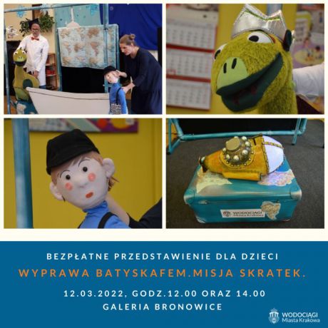 Wodociągi Miasta Krakowa już od kilku lat prowadzą program edukacji ekologicznej dla dzieci i młodzieży, poruszający problem nieodpowiedzialnego wyrzucania śmieci do kanalizacji. Tym razem, we współpracy z Galerią Bronowice, przygotowały autorski spektakl lalkowy zatytułowany „Wyprawa Batyskafem. Misja Skratek.”, w którym to aktorzy w zabawny sposób uświadamiają najmłodszych o tym, że nasze codzienne wybory mogą być zagrożeniem nie tylko dla sprawnego działania sieci kanalizacyjnej, ale także mają negatywny wpływ na środowisko naturalne.