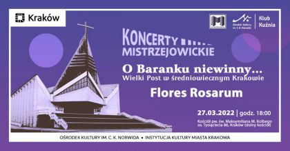 Koncerty Mistrzejowickie po długiej przerwie wracają na żywo! Zapraszamy na koncert „O Baranku niewinny… Wielki Post w średniowiecznym Krakowie” w wykonaniu Zespołu Flores Rosarum. Wydarzenie poprowadzi dr hab. Maciej Jabłoński. W programie konkursu fragmenty Ciemnych Jutrzni z Katedry wawelskiej oraz improwizacje ze zbiorów ss. Benedyktynek ze Staniątek i Sandomierza.