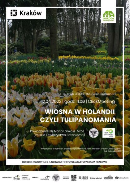 Wstęp wolny. Obowiązują zapisy: https://okn.clickmeeting.com/wiosna-w-holandii-czyli-tulipanomania/register
