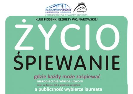 Scena Tęcza zaprasza na konkurs piosenki ŻYCIOŚPIEWANIE, nowy stały program organizowany przez Dom Kultury „Podgórze”. Gospodarzami wieczoru będą znana powieściopisarka, poetka i pieśniarka, Elżbieta Wojnarowska oraz pomysłodawca projektu, poeta Eryk Ostrowski.