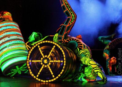 Futurystyczne, przestrzenne elementy scenografii oraz zastosowanie ruchomych fosforyzujących instrumentów, a także działań action painting sprawiają wrażenie niezwykłej dynamiki oraz oryginalnych zmian aranżacji przestrzeni.