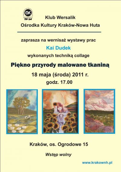 Klub Wersalik Ośrodka Kultury Kraków-Nowa Huta zaprasza na wernisaż wystawy prac Kai Dudek wykonanych metodą collage.