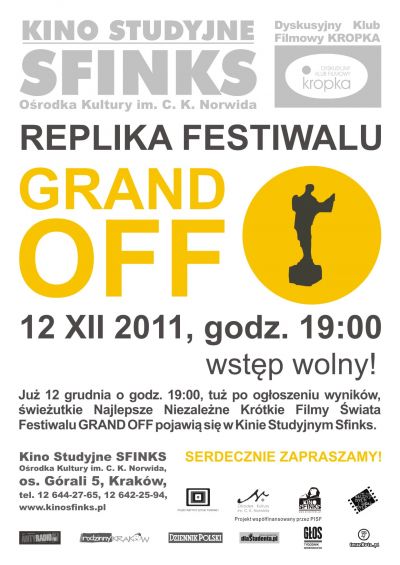 Już 12 grudnia o godz. 19:00, tuż po ogłoszeniu wyników, świeżutkie Najlepsze Niezależne Krótkie Filmy Świata Festiwalu GRAND OFF pojawią się w Kinie Studyjnym Sfinks.