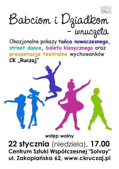 Okazjonalne pokazy tańca nowoczesnego, street dance, baletu klasycznego oraz prezentacje teatralne wychowanków CK „Ruczaj”.