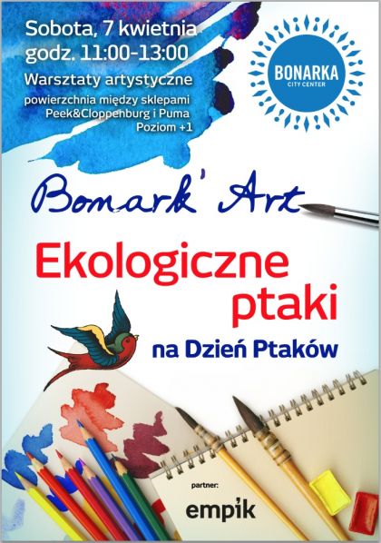Międzynarodowy Dzień Ptaków ma zwrócić uwagę na gorsze strony życia tych zwierząt: zagrażające im niebezpieczeństwa oraz zachęcić do pomocy w ochronie ptaków i ich siedlisk. W sobotę 7 kwietnia w ramach warsztatów artystycznych Bonar’Art symbolicznie włączymy się w tę inicjatywę.
