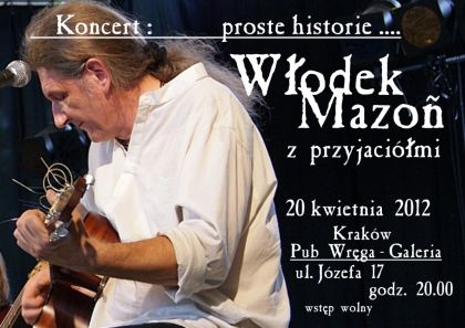 Piątkowy wieczór w Pubie WRĘGA umili wam Włodek Mazoń z przyjaciółmi jak zwykle aplikując wam solidną dawkę poezji śpiewanej.