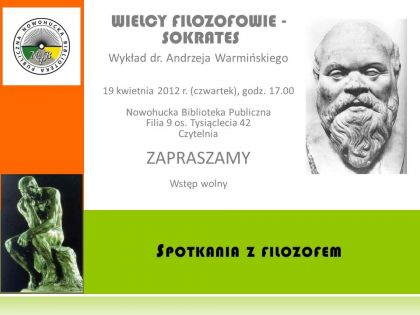 Filia nr 9 NhBP realizuje cykl spotkań z dr Andrzejem Warmińskim pracownikiem naukowym Instytutu Filozofii i Socjologii Uniwersytetu Pedagogicznego im. Komisji Edukacji Narodowej w Krakowie. Specjalność dr. Andrzeja Warmińskiego to: aksjologia, estetyka, etyka, filozofia kultury, filozofia współczesna, historia filozofii. Jako pracownik akademicki w przystępny sposób przybliża czytelnikom zagadnienia filozofii.
